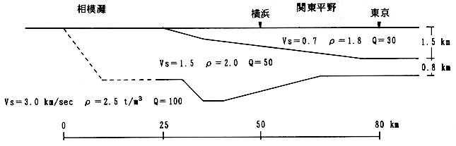 図−3 関東平野南西部の2次元地盤モデル(図−2のA-A'断面)