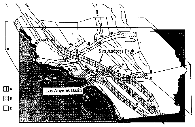 図2.5.1、第一世代"Master Model"のサイスミックゾーン (The 65 Seismo Tectonic Source Zones, [2]に加筆