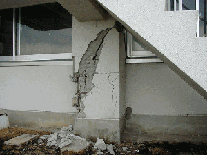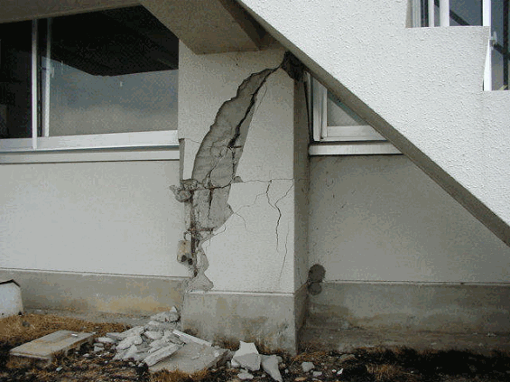 写真3 A棟南側の1階中柱のせん断破壊 写真4 A棟南側の1階中柱のせん断破壊