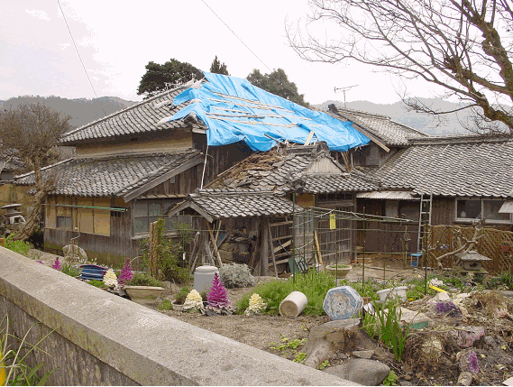 山口県東和町の住家被害(震度5強、全壊7棟、半壊26棟:倒壊したものは無し)
