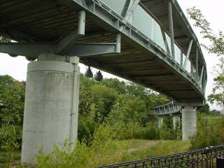 写真9.とっとり花回廊ドーム(溝口町)ドームの外周を囲むS造大回廊を支えるコンクリート柱の頭の取り合い部コンクリートが破壊